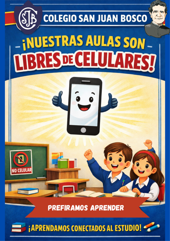En nuestro colegio, preferimos las sonrisas reales a los emoticonos. Por eso, en los salones de clase no usamos el celular, para que nada nos distraiga de la alegría de aprender y jugar juntos.